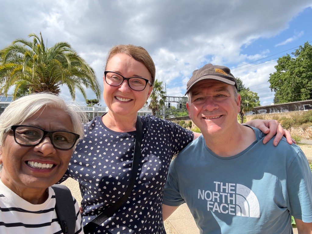 On my return trip from Montreux, I met three jovial men on the train. The one standing was a lawyer; the other two were retired teachers. They have a club and meet every Thursday for long walks or trips to mountain tops — regardless of the weather. One is 76, and the other two are in their 80s. That day, they got up at five to catch the early morning train. Quite inspiring! When I asked if I could take their photo, one of them joked, “For which paper do you report?” 😀 I thoroughly enjoyed their company.