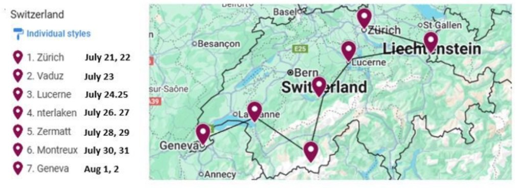 At 71, I embarked on my longest-ever solo trip — twelve days in Switzerland and one day in Vaduz, Liechtenstein. I stayed in seven different places and immersed myself in the stunning countryside, tranquil lakes, majestic mountains, bustling cities, impressive glaciers, and the country’s famously efficient network of trains, buses, trams, cable cars, chair lifts, funiculars — and even the iconic cogwheel trains that climb impossibly steep slopes.